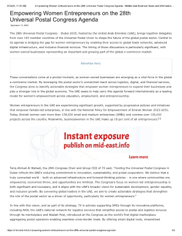 9/12/25, 11:55 AM Empowering Women Entrepreneurs on the 28th Universal Postal Congress Agenda - Middle East Business News and Information …