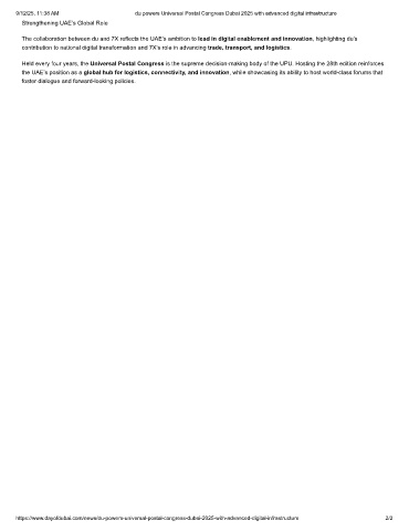 9/12/25, 11:38 AM du powers Universal Postal Congress Dubai 2025 with advanced digital infrastructure