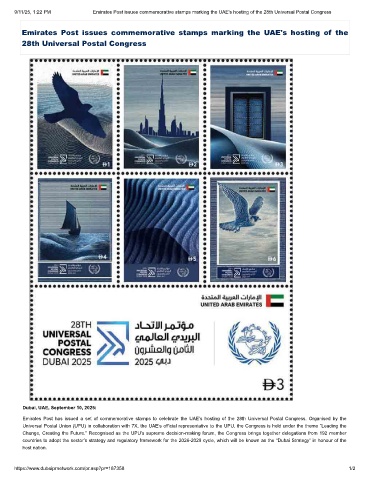 9/11/25, 1:22 PM Emirates Post issues commemorative stamps marking the UAE's hosting of the 28th Universal Postal Congress