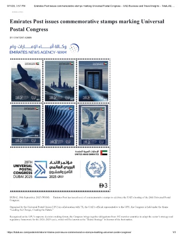 9/11/25, 3:57 PM Emirates Post issues commemorative stamps marking Universal Postal Congress – UAE Business and Travel Insights – TotalUAE.…