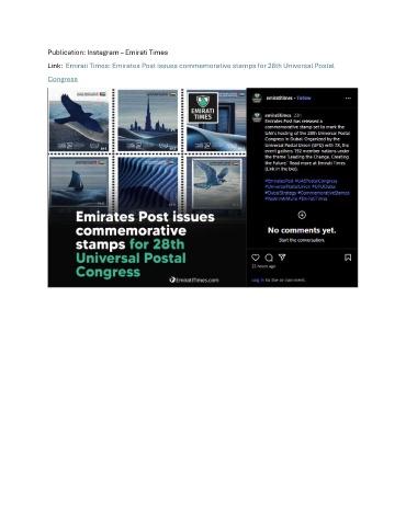 Publication: Instagram – Emirati Times Link: Emirati Times: Emirates Post issues commemorative stamps for 28th Universal Postal Congress
