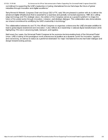 https://menafn.com/1110045741/Du-Announced-As-Official-Telecommunication-Partner-Supporting-The-Universal-Postal-Congress-Dubai-2025 2/2
