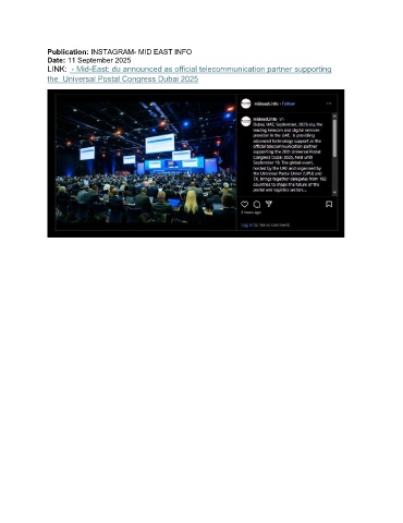 Publication: INSTAGRAM- MID EAST INFO Date: 11 September 2025 LINK: - Mid-East: du announced as official telecommunication partner supporting the Universal Postal Congress Dubai 2025
