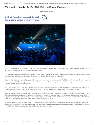9/10/25, 10:57 AM 7X launches ‘Waslah Post’ at 28th Universal Postal Congress – UAE Business and Travel Insights – TotalUAE.com