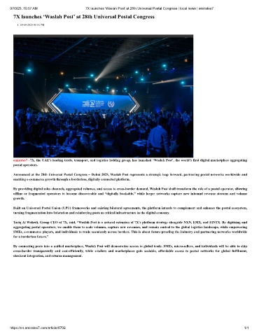 9/10/25, 10:57 AM 7X launches ‘Waslah Post’ at 28th Universal Postal Congress | local news | emirates7