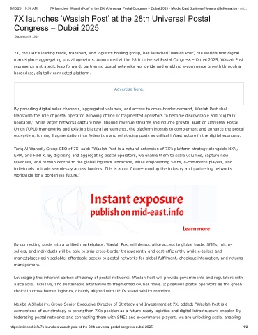 9/10/25, 10:57 AM 7X launches ‘Waslah Post’ at the 28th Universal Postal Congress – Dubai 2025 - Middle East Business News and Information - mi…