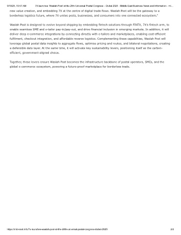 9/10/25, 10:57 AM 7X launches ‘Waslah Post’ at the 28th Universal Postal Congress – Dubai 2025 - Middle East Business News and Information - mi…