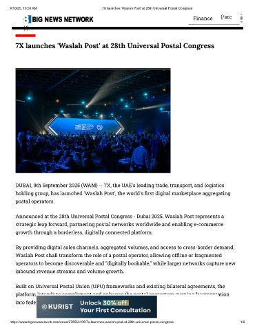 9/10/25, 10:58 AM 7X launches 'Waslah Post' at 28th Universal Postal Congress