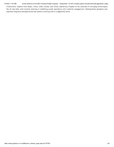 like AI, big data, and machine learning in redefining postal operations and customer engagement. Distinguished speakers also