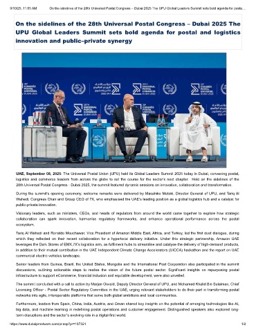 9/10/25, 11:05 AM On the sidelines of the 28th Universal Postal Congress – Dubai 2025 The UPU Global Leaders Summit sets bold agenda for posta…