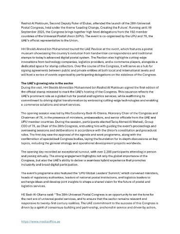 HE Badr Al-Olama said: “The 28th Universal Postal Congress is an opportunity to set the tone for