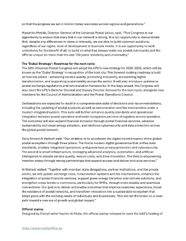postal exchange regulations and remuneration frameworks. In the days ahead, the Congress will