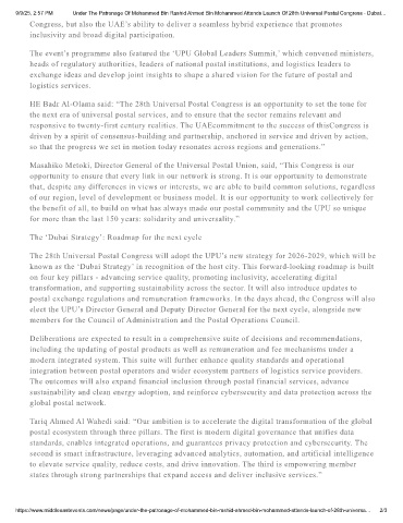 9/9/25, 2:57 PM Under The Patronage Of Mohammed Bin Rashid Ahmed Bin Mohammed Attends Launch Of 28th Universal Postal Congress - Dubai…