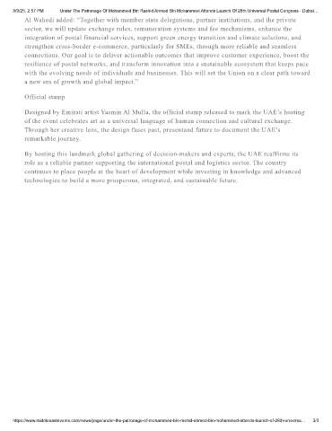 9/9/25, 2:57 PM Under The Patronage Of Mohammed Bin Rashid Ahmed Bin Mohammed Attends Launch Of 28th Universal Postal Congress - Dubai…