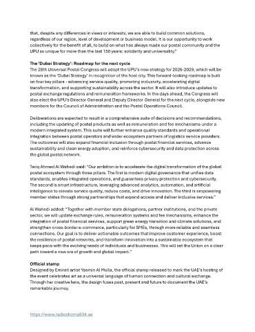 postal exchange regulations and remuneration frameworks. In the days ahead, the Congress will