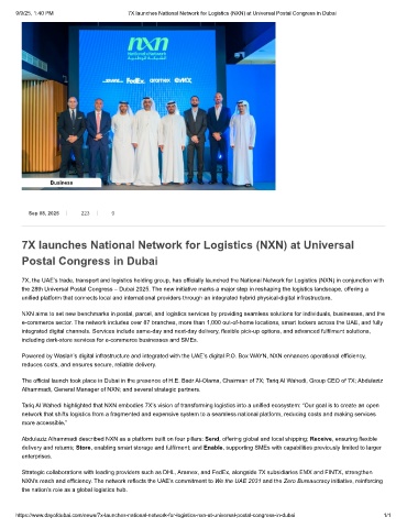 9/9/25, 1:40 PM 7X launches National Network for Logistics (NXN) at Universal Postal Congress in Dubai