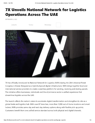 9/9/25, 1:42 PM 7X Unveils National Network for Logistics Operations Across The UAE