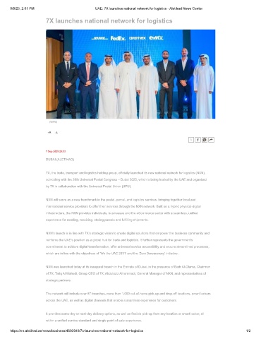 https://en.aletihad.ae/news/business/4603949/7x-launches-national-network-for-logistics 1/2