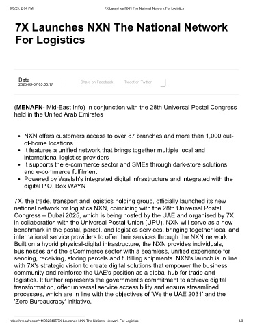 https://menafn.com/1110028405/7X-Launches-NXN-The-National-Network-For-Logistics 1/3