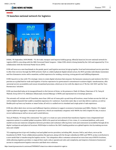 DUBAI, 7th September, 2025 (WAM) - 7X, the trade, transport and logistics holding group, officially launched its new national network for