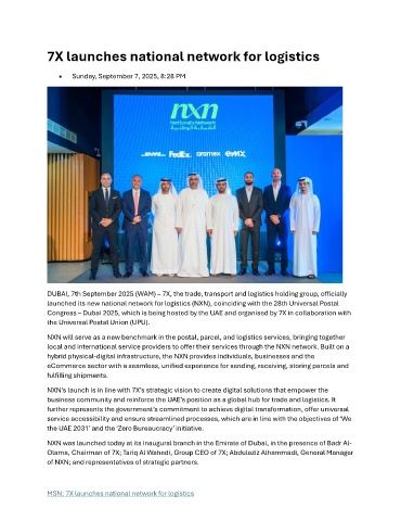 DUBAI, 7th September 2025 (WAM) – 7X, the trade, transport and logistics holding group, officially
