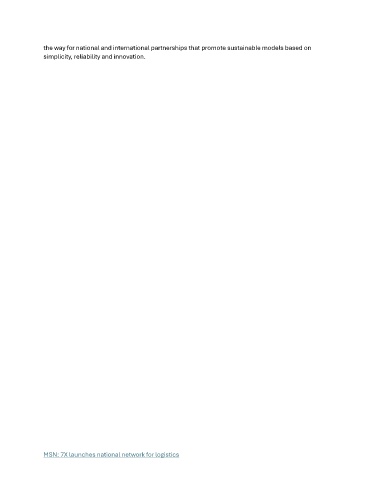 the way for national and international partnerships that promote sustainable models based on simplicity, reliability and innovation. MSN: 7X launches national network for logistics