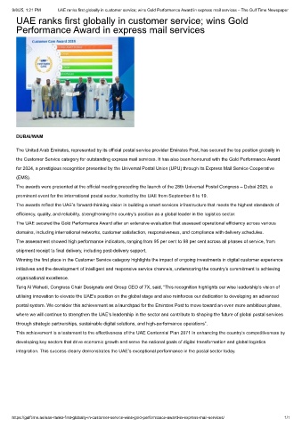 https://gulftime.ae/uae-ranks-first-globally-in-customer-service-wins-gold-performance-award-in-express-mail-services/ 1/1