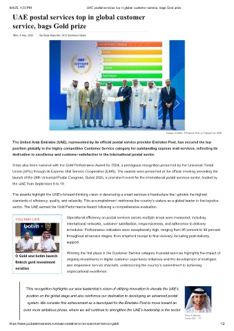 9/8/25, 1:23 PM UAE postal services top in global customer service, bags Gold prize