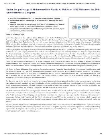 9/4/25, 10:31 AM Under the patronage of Mohammed bin Rashid Al Maktoum UAE Welcomes the 28th Universal Postal Congress