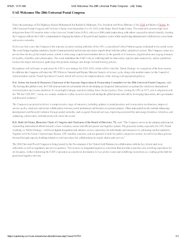 9/4/25, 10:31 AM UAE Welcomes The 28th Universal Postal Congress - UAE Today