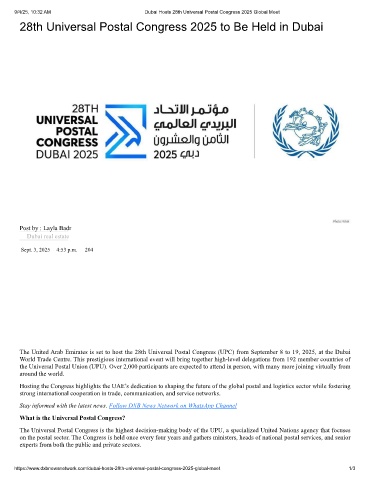 9/4/25, 10:32 AM Dubai Hosts 28th Universal Postal Congress 2025 Global Meet