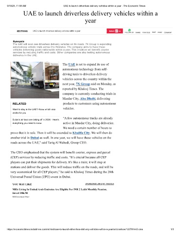 https://economictimes.indiatimes.com/nri/visit/uae-to-launch-driverless-delivery-vehicles-within-a-year/articleshow/123781443.cms 1/3