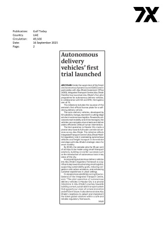 Publication: Gulf Today Country: UAE Circulation: 49,500 Date: 16 September 2025 Page: 2