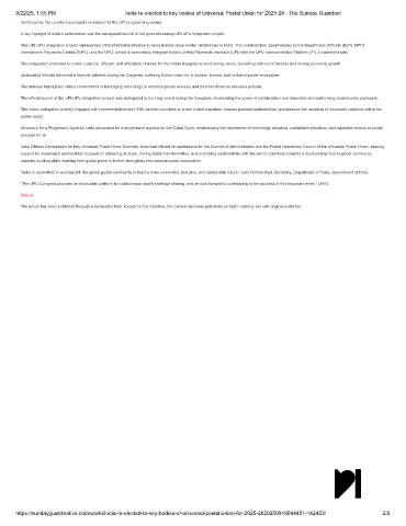 https://sundayguardianlive.com/world/india-re-elected-to-key-bodies-of-universal-postal-union-for-2025-2820250919094451-142453/ 2/2