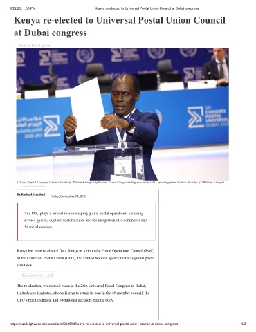 9/22/25, 1:58 PM Kenya re-elected to Universal Postal Union Council at Dubai congress