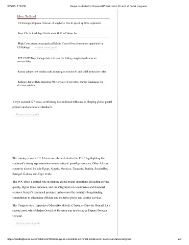 9/22/25, 1:58 PM Kenya re-elected to Universal Postal Union Council at Dubai congress