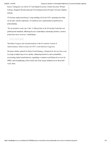9/22/25, 1:58 PM Kenya re-elected to Universal Postal Union Council at Dubai congress