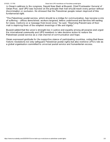 https://www.muscatdaily.com/2025/09/15/oman-hails-upu-resolutions-on-palestinian-postal-rights/ 2/2