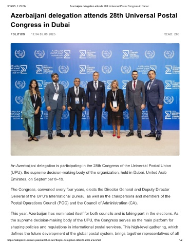 9/12/25, 1:29 PM Azerbaijani delegation attends 28th Universal Postal Congress in Dubai