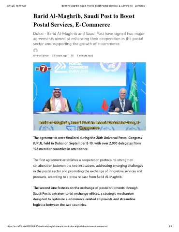 https://en.le7tv.ma/2025/09/10/barid-al-maghrib-saudi-post-to-boost-postal-services-e-commerce/ 1/2