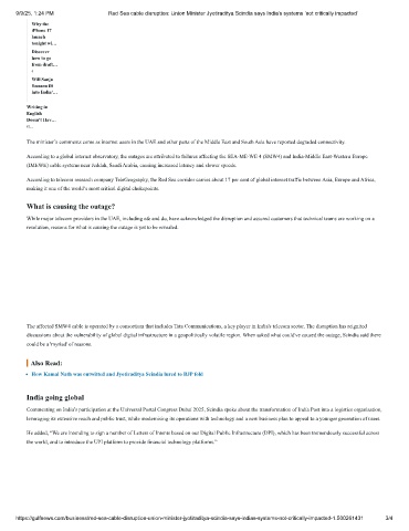 9/9/25, 1:24 PM Red Sea cable disruption: Union Minister Jyotiraditya Scindia says India’s systems ‘not critically impacted’
