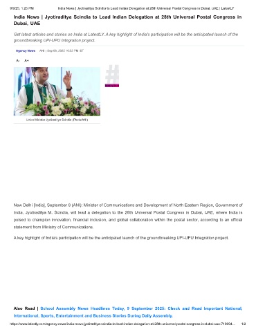 9/9/25, 1:25 PM India News | Jyotiraditya Scindia to Lead Indian Delegation at 28th Universal Postal Congress in Dubai, UAE | LatestLY