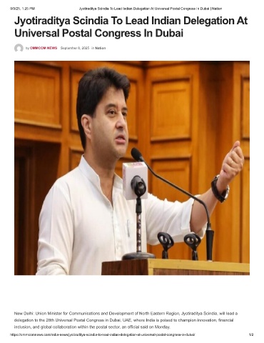 https://ommcomnews.com/india-news/jyotiraditya-scindia-to-lead-indian-delegation-at-universal-postal-congress-in-dubai/ 1/2