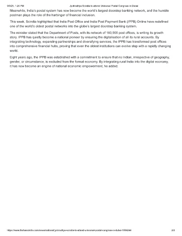 9/9/25, 1:26 PM Jyotiraditya Scindia to attend Universal Postal Congress in Dubai