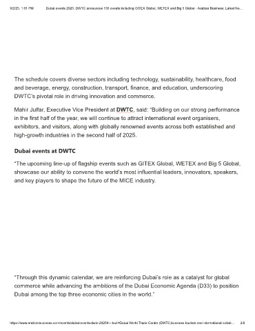 9/2/25, 1:01 PM Dubai events 2025: DWTC announces 135 events including GITEX Global, WETEX and Big 5 Global - Arabian Business: Latest Ne…