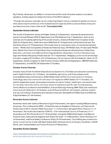 Gulf Bride Show (12–18 September). Mid-month sees an impressive roster of manufacturing trade