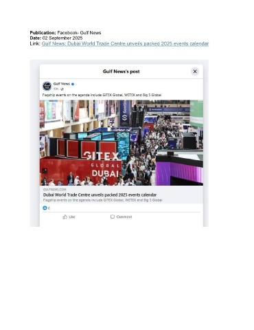 Publication: Facebook- Gulf News Date: 02 September 2025 Link: Gulf News: Dubai World Trade Centre unveils packed 2025 events calendar