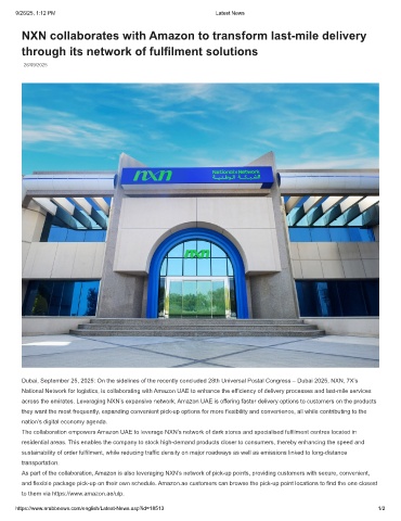 National Network for logistics, is collaborating with Amazon UAE to enhance the efficiency of delivery processes and last-mile services
