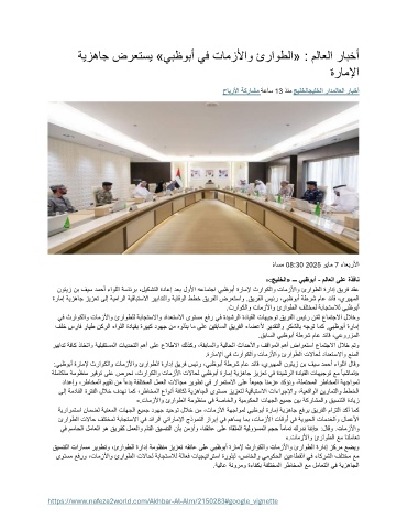 :يبظوبأ ةراملإ ثراوكلاو تامزلأاو ئراوطلا ةرادإ قيرف سيئر ،يبظوبأ ةطرش ماع دئاق ،يريهملا نوتيز نب فيس دمحأ ءاوللا لاقو