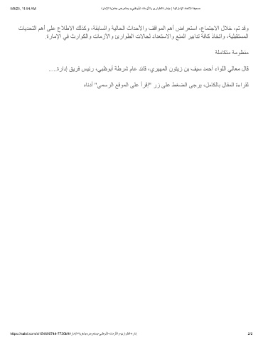 5/8/25, 11:54 AM ةرﺎﻣﻹا ﺔﯾزھﺎﺟ ضرﻌﺗﺳﯾ «ﻲﺑظوﺑﻷ تﺎﻣزﻷاو ئراوطﻟا ةرادإ» | ﺔﯾﺗارﺎﻣﻹا دﺎﺣﺗﻻا ﺔﻔﯾﺣﺻ